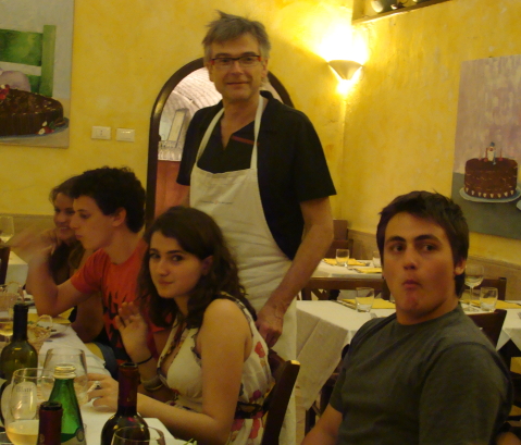 The occasion was the 17th birthday of Matilde, which she celebrated together with the 17th birthday of a friend Claudio (on the right) in the Restaurant "La Formica e la Cicala" in Via Urbana in Monti. Andrea, the owner of the restaurant is our friend and so I could join the colleagues from Bangla Desh in the kitchen that night. The menu was:
